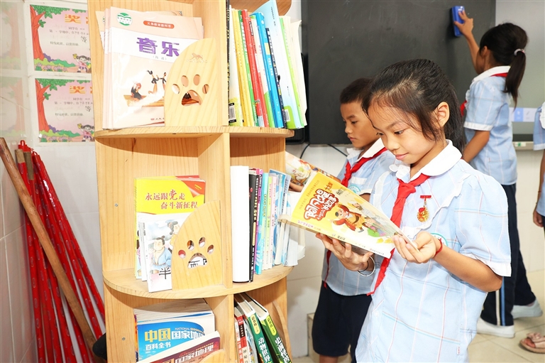 吉阳区罗蓬小学学生在认真阅读。