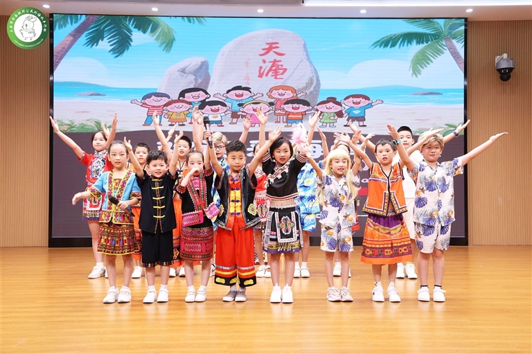 三亚市第二小学红庄校区,孩子们在舞台上勇敢展示自我。