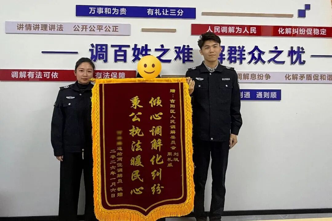 一面锦旗,是群众对调解工作的认可;一次成功调解,体现了基层治理的温度与效能。下一步,吉阳区将持续以“矛盾化解在基层”为宗旨,聚焦邻里、租赁等民生关键小事,以专业、耐心、真诚的态度搭建沟通桥梁,有效促进社区和谐稳定。