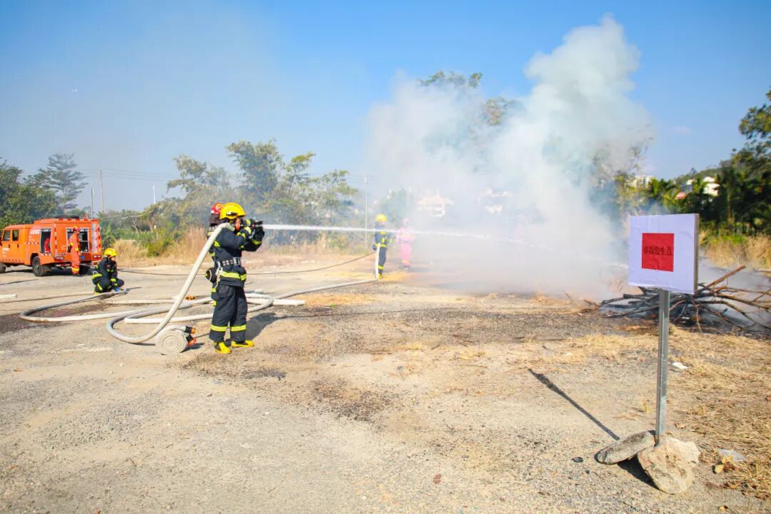 演练中,南丁村委会基层应急队伍率先进行初期火情控制。随后区森林防灭火半专业队伍与吉阳区消防救援大队协同作战,利用风力灭火机、消防水车等装备合力扑灭火点。明火扑灭后,队伍对现场进行了全面清理,防止复燃。