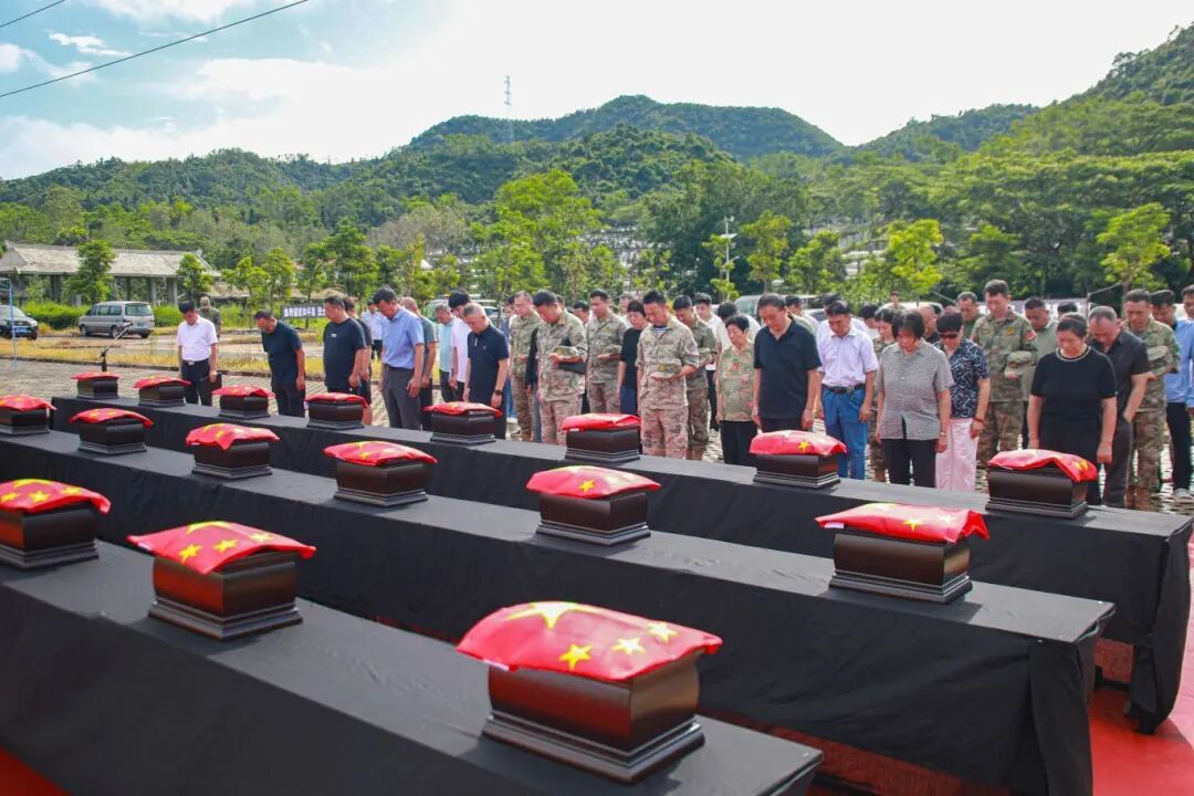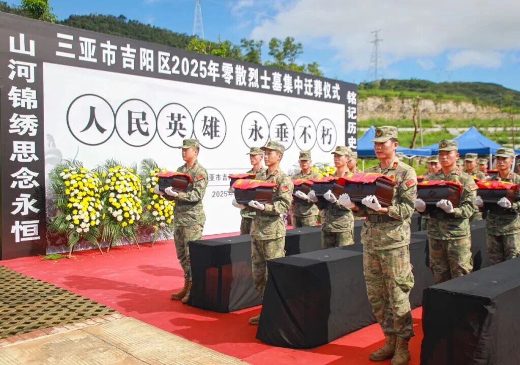 青山有幸埋忠骨,南海无恙铸军魂。10月15日,吉阳区举行2025年零散烈士墓集中迁移安葬仪式,将许跃迪等24座烈士墓集中迁入三娘公墓,进行统一安葬和管护,让英魂齐聚,永承缅怀。吉阳区有关领导、烈士家属代表、学生代表及各界群众共80余人参与仪式。
