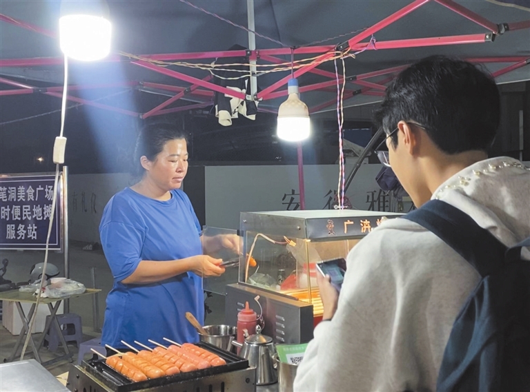 “不能让‘烟火气’变成‘脏乱差’,更不能堵死创业者的路。”为破解这一困境,落笔村积极响应三亚市“15分钟便民圈”建设号召,精准施策在抱坡村七组规划建设便民地摊服务站,将分散的摊贩集中疏导至固定区域,实行统一规范化管理。这一举措不仅彻底解决了此前的交通和环境痛点,更依托靠近大学的区位优势,摊主们有了稳定客源。学生群体对特色小吃、文创饰品等多样化的消费需求,也让地摊经济更红火。