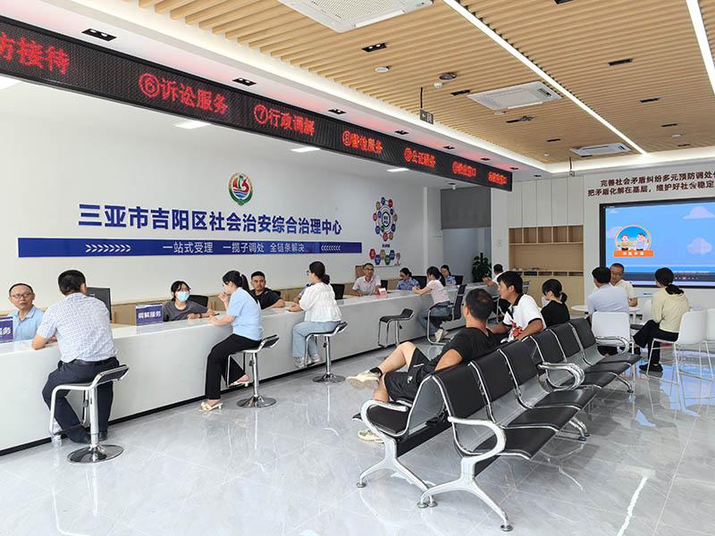 今年6月30日,吉阳区综治中心正式揭牌运行。吉阳区委政法委按照省、市的指引和要求,选址新建区综治中心,面积660平方米,连通吉阳区人社局就业驿站和市综合行政执法局吉阳分局劳动监察部门,形成1000平方米的“解纷终点站”。